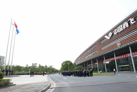 2025年5月11日,在中國商飛公司成立17周年之際,公司在設計研發(fā)中心舉行升旗活動(dòng),并同步開(kāi)展“大飛機愛(ài)心日”活動(dòng),弘揚“愛(ài)心翱翔、責任領(lǐng)航”的社會(huì )責任觀(guān)。公司黨委書(shū)記、董事長(cháng)賀東風(fēng),黨委副書(shū)記、總經(jīng)理沈波,黨委副書(shū)記、董事羅曉,黨委常委戚學(xué)鋒、于世海、羅興平、李玲、張小光、吳文生出席活動(dòng)。公司領(lǐng)導和全體干部職工捐出一天的工資,為困難職工和社會(huì )困難群體奉獻愛(ài)心?;顒?dòng)由沈波主持。